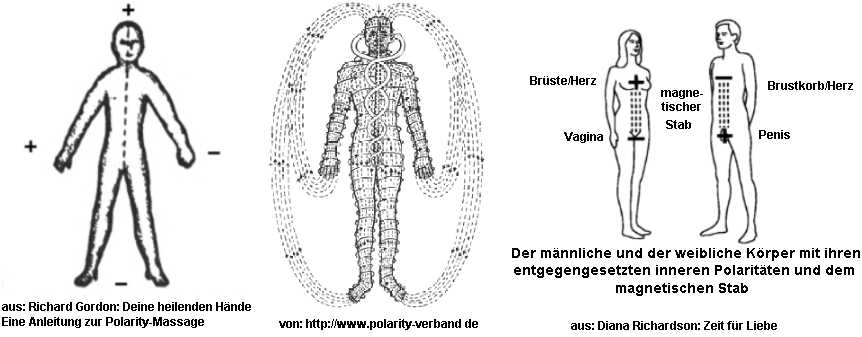 Weitgehend ablehnend habe ich das gelesen, was Diana Richardson über Polarität in der Sexualität schreibt. Das Kapitel "Die Polarität und die positiven Pole der Liebe" fängt gleich an mit dem Satz. "Die größte Einsicht von Tantra, ja ihr Fundament ist, dass die maskuline und die feminine Energie gleiche und entgegengesetzte Kräfte sind."