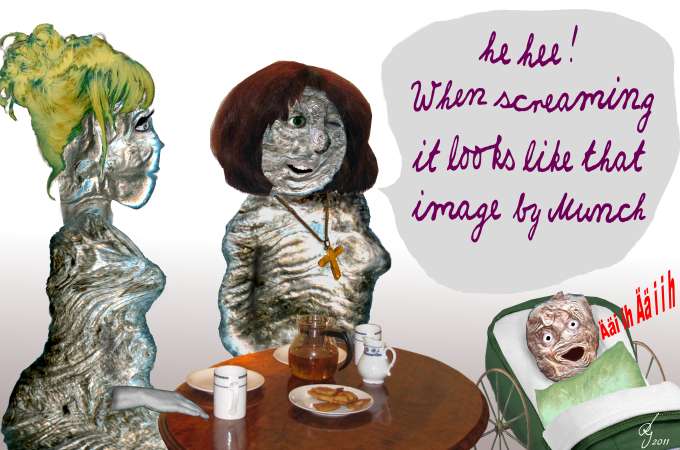 The exhibition started with cartoons of children suffering in unlucky situations that were (or are) considered “normal” .