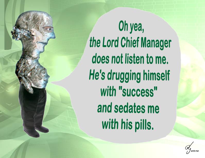 On the fourth part of the wall hung pictures dealing with the emotional sickness of business leaders and large speculators.