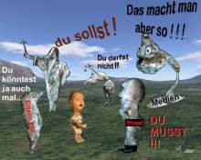 Andere Leute sind nicht verantwortlich für meine Gefühle "Erst hüh- dann hott! Ich bring sie um !!" |