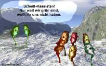 Gefühle nicht ausdrücken in der passiven Form des Partizips (angegriffen, benutzt...) "Scheiß Rassisten" |