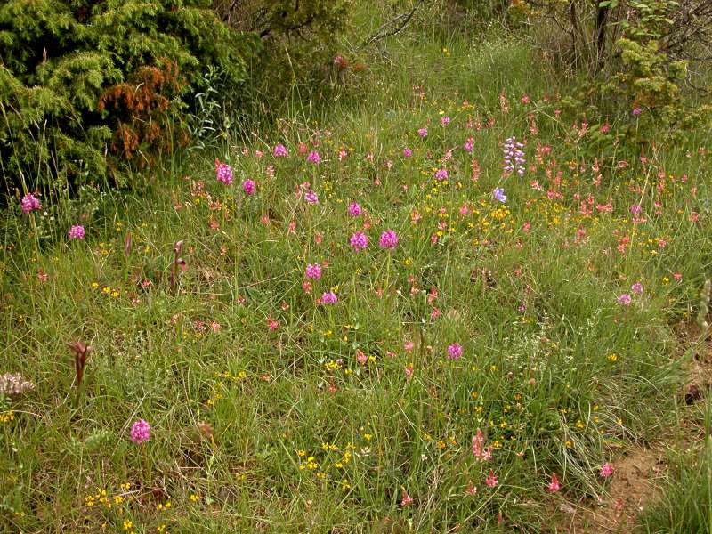 einer Orchideenwiese mit Anacamptis pyramidalis, Orchis militaris,