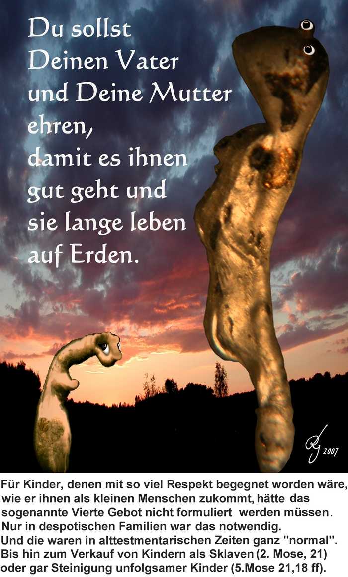 12Du sollst deinen Vater und deine Mutter ehren, auf dass du lange lebest in dem Lande, das dir der HERR, dein Gott, geben wird. (siehe dazu das Bild ganz unten)