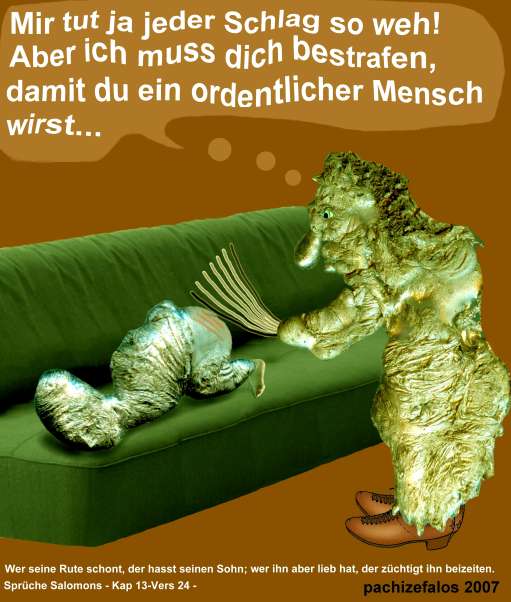 Lass nicht ab, den Knaben zu züchtigen; denn wenn du ihn mit der Rute schlägst, so wird er sein Leben behalten.