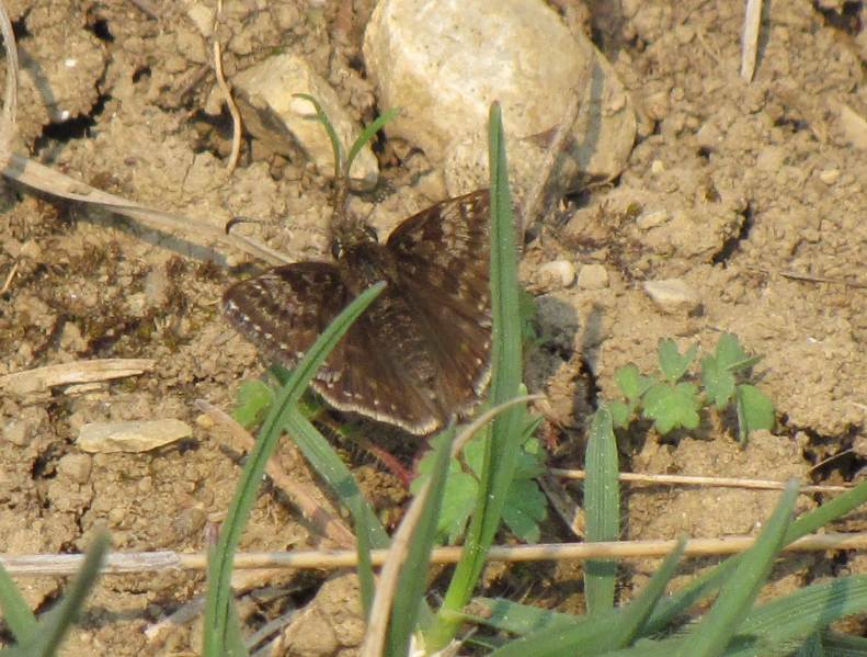 Dunkler Dickkopf-Falter oder Kronwicken-Dickkopffalter - Erynnis tages oben und unten zwei unterschiedlich gefärbte Falter Dörnberg, bei Zierenberg (Nordhessen) 1. Mai 2009