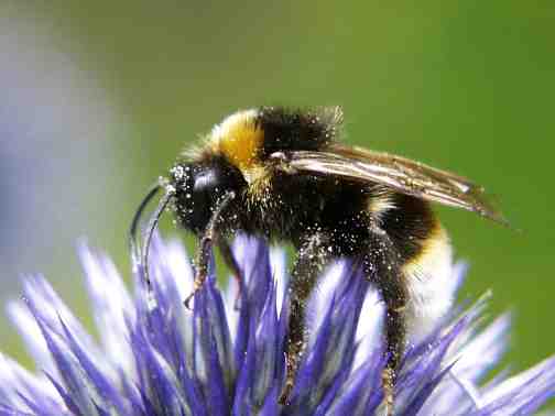 ![]() Dunkle Erdhummel an Kugeldistel