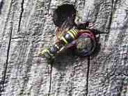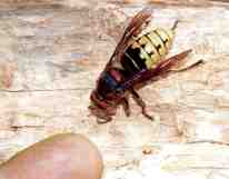 ![]() Hornisse vor Finger sammelt Holzfasern für Nestbau