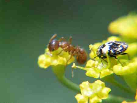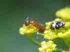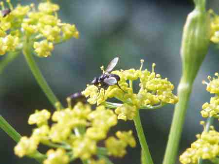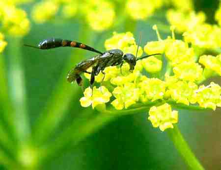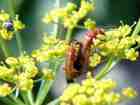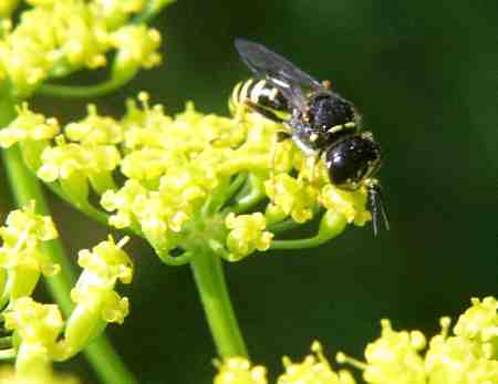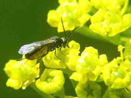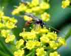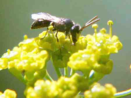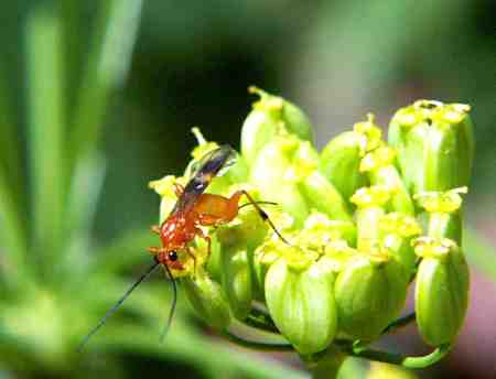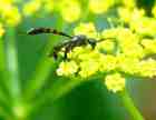 Insekten an Pastinak Für diese Fotoserie habe ich im Sommer 1999 etwa zwei Stunden an einer Pastinakpflanze gesessen und - so gut ich konnte - alle Insekten fotografiert, die an den Nektarien dieser Pflanze Nahrung aufgenommen haben. Wegen der Schnelligkeit einiger Insekten, konnte ich gar nicht alle fotografieren, aber ich war auch schon so beeindruckt, wie viele unterschiedliche Insekten da kamen. Meine Artenkenntnis geht nicht so weit, dass ich alle Insekten richtig benennen könnte, ich habe nicht einmal ausreichende Bestimmungsbücher, um nach diesen Fotos eine etwas genauere Bestimmung vorzunehmen. Wenn jemand die Seite anschaut, der einzelne Insekten erkennt, würde ich mich sehr freuen über E-Mail, in der mir die Namen mitgeteilt werden.