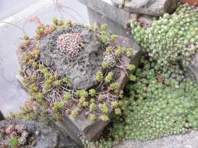 auf dem blasigen Basaltstein wächst die Gleiche Spinnen-Hauswurz wie