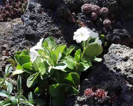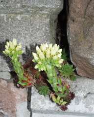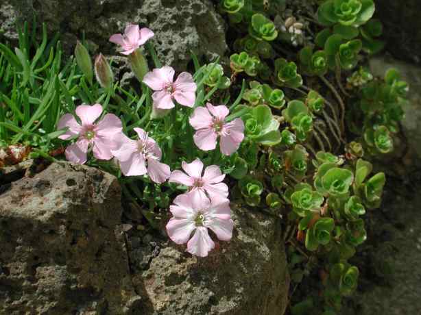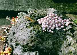 Pflanzen auf Steinen Diese Pflanzen wachsen seit 1990 auf Sandsteinen, die mit Hammer und Meißel etwas ausgehöhlt wurden. Einige der hier abgebildeten Pflanzen wurden in der Zeit verdrängt von den widerstandsfähigeren Arten. Neuere Bilder der gleichen Steintröge 2007 Durch Klicken auf das Bild öffnet sich eine Vergrößerung.