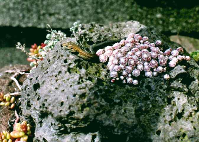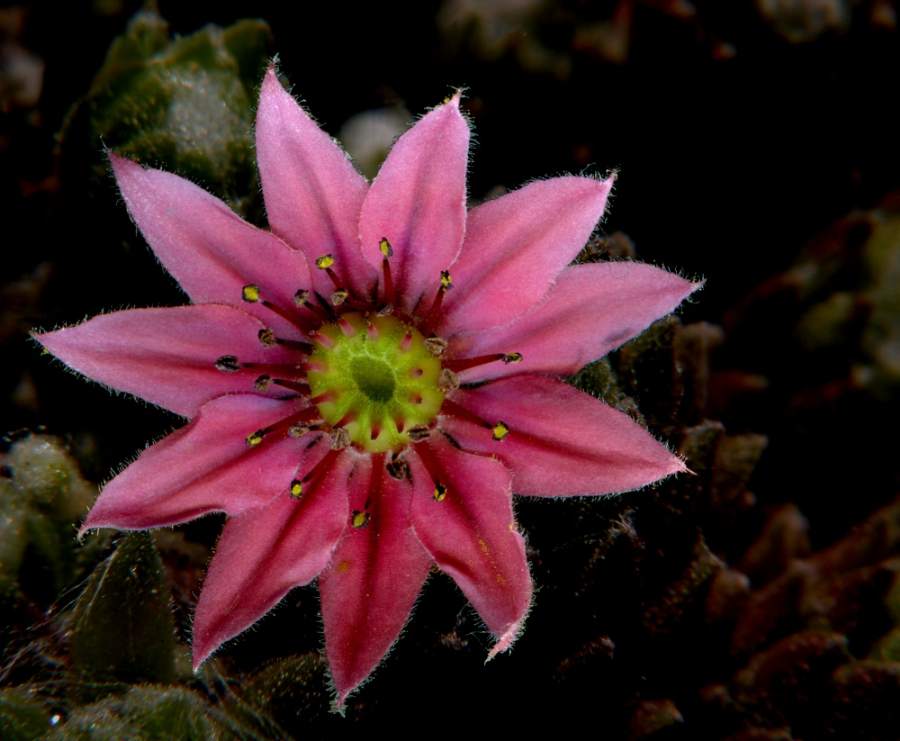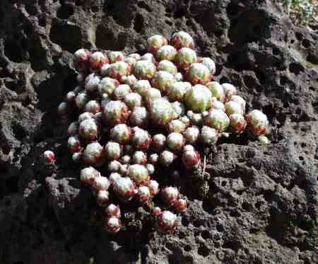 Spinnen-Hauswurz auf tuffartigem Basalt aus dem Vogelsberg, Sempervivum arachnoideum |