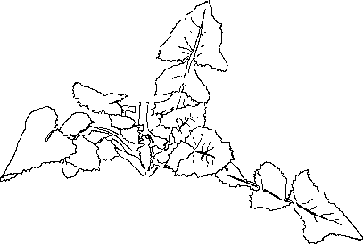 Zum Salat werden nur die ganz jungen Blätter genommen, die gerade aus der Erde kommen (a). (Etwas ältere Blätter (b) kann man sehr gut zu Spinat verwerten. mit Brennnessel, 1 zu 1 gemischt, zubereitet wie normaler Spinat mit Zwiebeln und Sahne, schmeckt besser als gewöhnlicher Spinat.) Auch zum Salat können einzelne Blätter genommen werden, die schon ein paar Tage älter sind (b), nur sollten diese wegen des intensiveren Geschmacks als Gewürz fein geschnitten werden. Am besten im Freien probieren und dann aktuell entscheiden, denn das Aroma ist stark von der Jahreszeit abhängig. im Zweifelsfall einfach ein kleines stück probieren. . . Wer den Giersch als Gemüse mag, denkt vielleicht ganz anders über den Giersch in seinem Garten. |