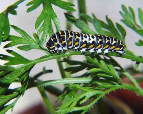 Eiablage am Liebstöckel | Ei am Liebstöckel | Raupenkasten mit Liebstöckel | |