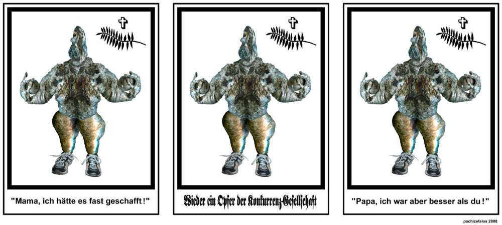 Vater und Sohn, Karikarur zu einer typischen Situation von Doppelbindung (Double-Bind) |