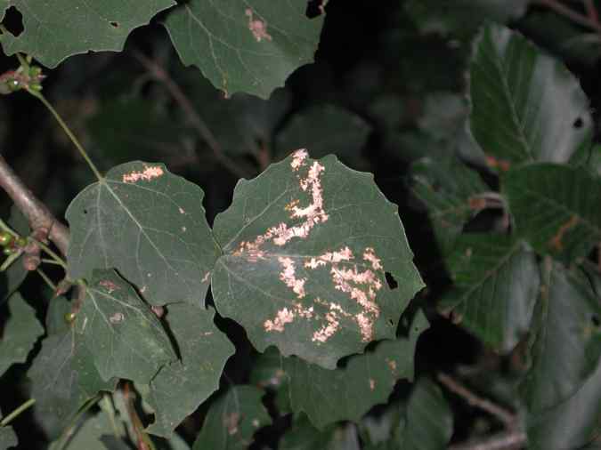 Gänge einer Miniermotte an Zitterpappel |