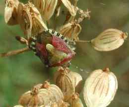 Eine Baumwanze an Bärenklau |