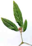 Zweig des immergrünen Schneeballs (V. rhythodophyllum)